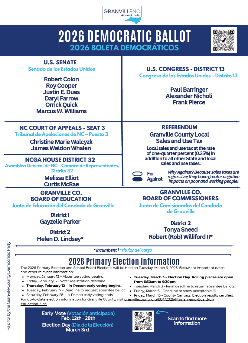 Here you’ll find all the resources that you need as a Voter in Granville County. From registering to vote, updating your party affiliation, contact information for your Representatives…everything is right here in one place for you!